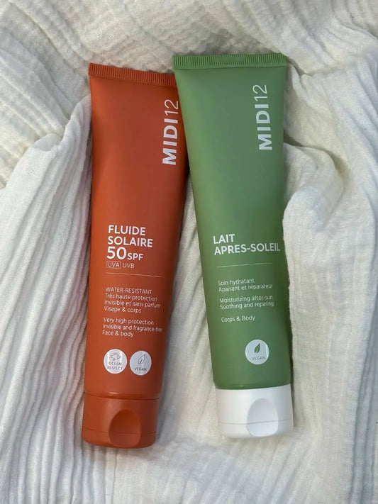 Aanbod van zonneproducten voor gelaat en lichaam.